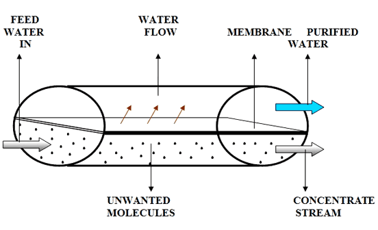 通過錯流過濾,進料流連續(xù)地流過膜,任何不通過膜的物質(zhì)都會與交叉流一起被運送并被送到排污口。以這種方式“反滲透”的過程可以不間斷地進行,而不會堵塞膜。