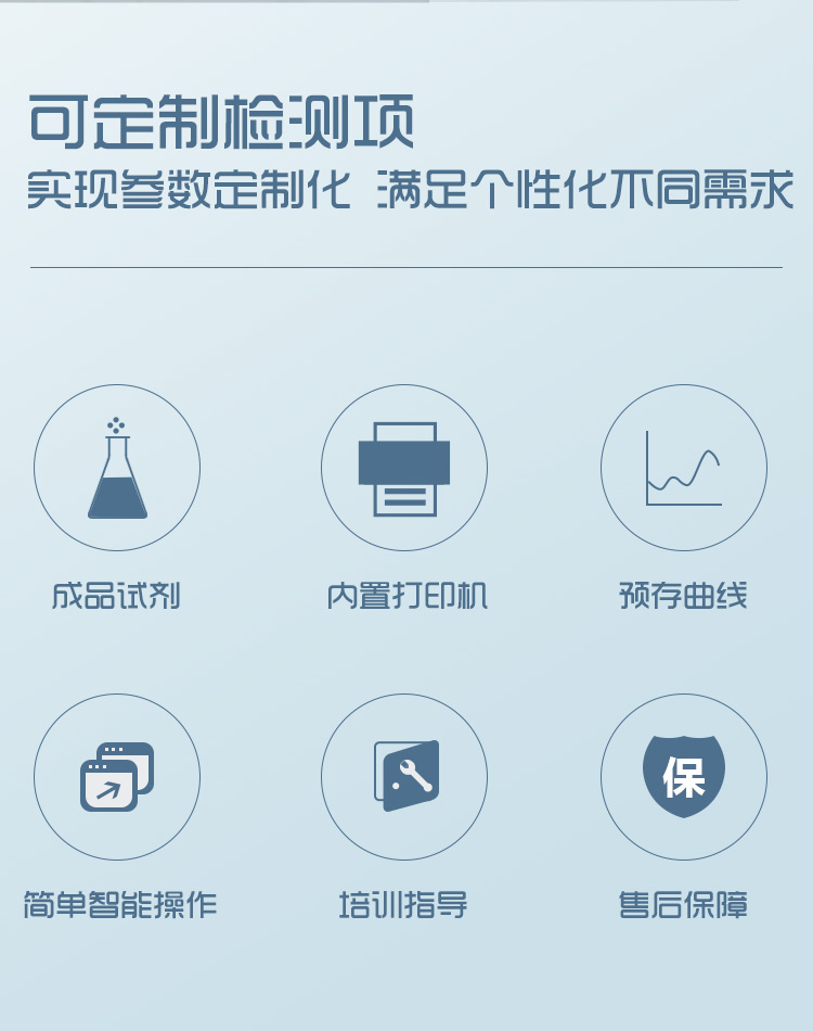 6、儀器內(nèi)存儲(chǔ)有全量程范圍內(nèi)的標(biāo)定曲線 ,具有斷電保護(hù),標(biāo)定數(shù)據(jù)不會(huì)丟失。