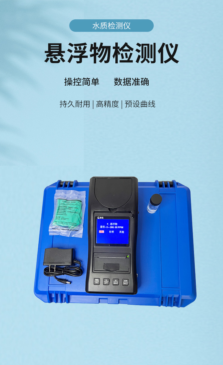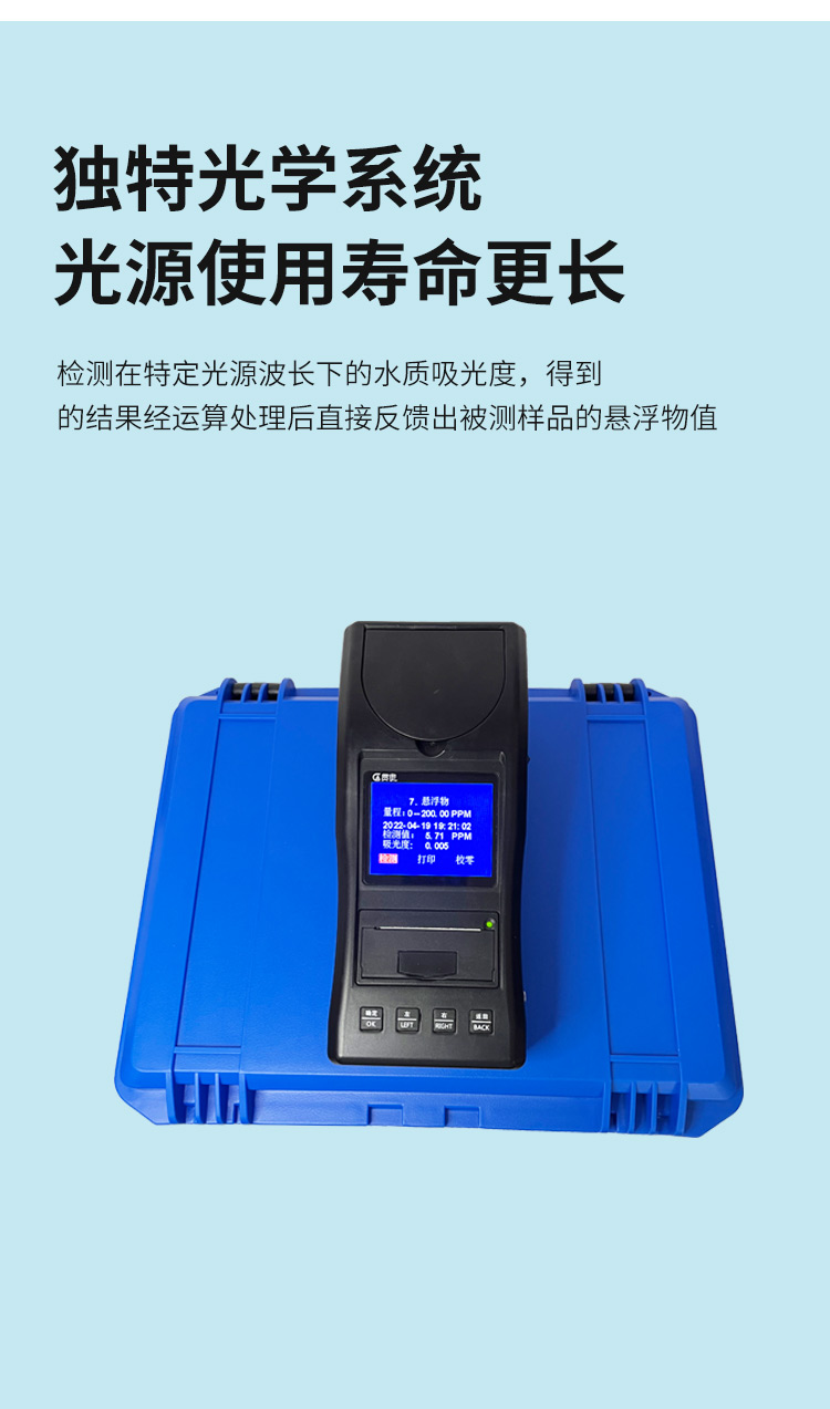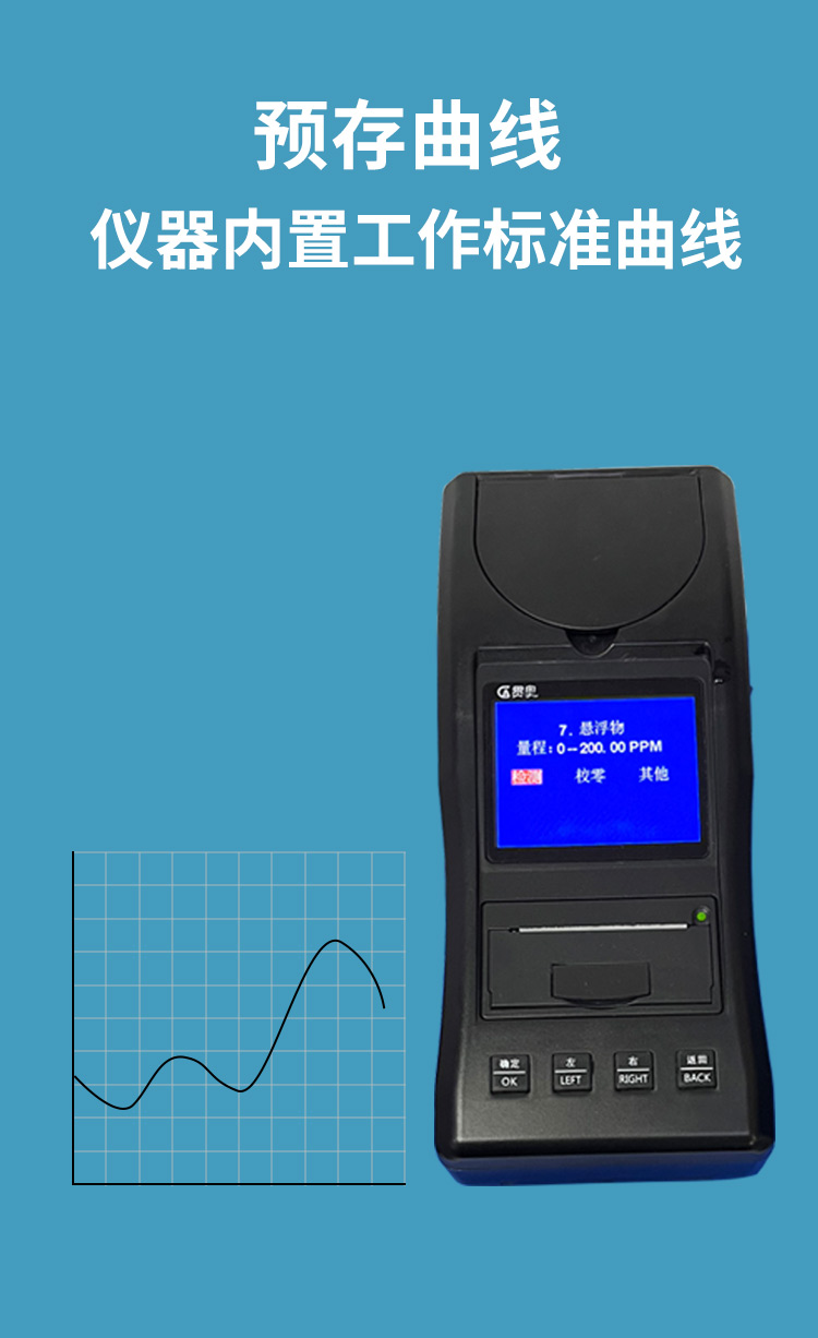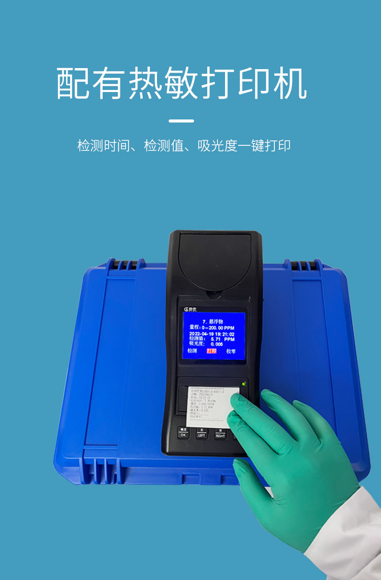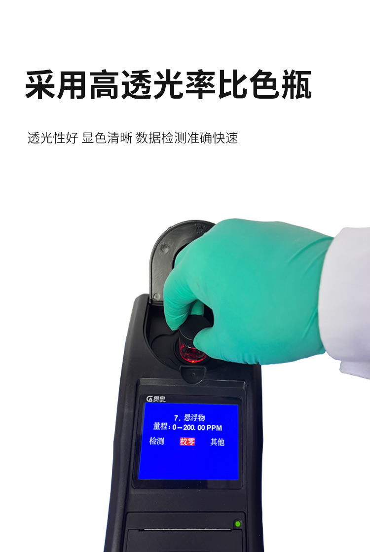 懸浮物水質檢測儀可快速準確測定地表水、地下水、城市污水及工業(yè)廢水中懸浮物指標,濃度直讀;可廣泛用于水廠、食品、化工、冶金、環(huán)保及制藥行業(yè)等部門。儀器是由單個的固定波長固定用途的分光光度計糅合而成的,采用分光光度法原理對各參數進行測量,在儀器中建立不同參數的濃度顯色程度與吸光度的線性曲線,儀器通過對顏色的辨別,得出被測水樣的濃度。本儀器采用全中文菜單,操作簡單易懂,使用方便快速測量準確度高。